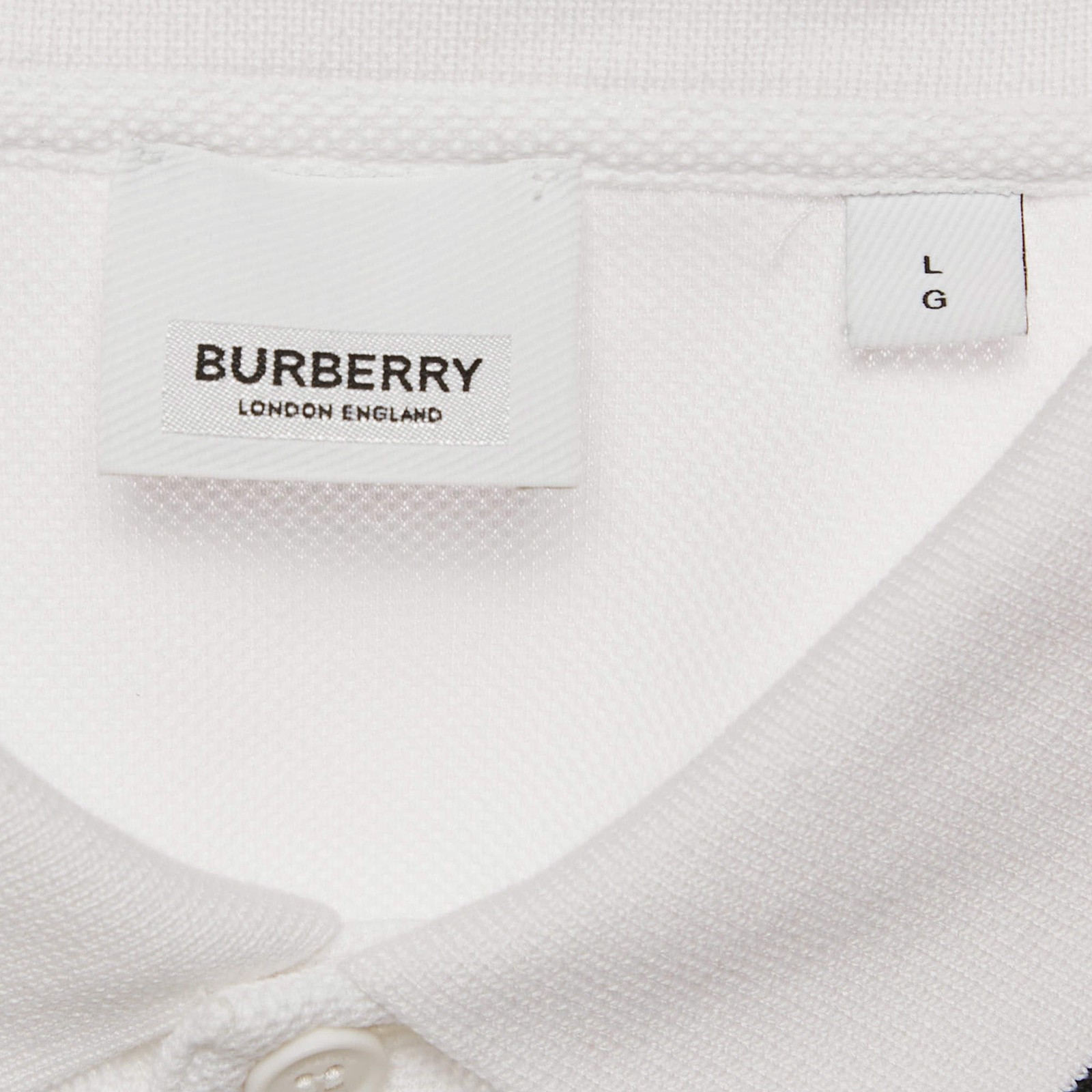 Clean and contemporary, this Burberry polo is crafted from breathable cotton piqué and finished with the iconic TB monogram embroidery. In crisp white, it delivers timeless British sophistication with a sporty undertone, making it a wardrobe essential for smart casual days.Certified by The Luxury Closet - This item has gone through a detailed authentication process overseen by our experts. We offer a lifetime guarantee of authenticity on all our items. Import duties, taxes and charges are not included in the item price. These charges are the buyers responsibility. Please check with your country’s customs office to determine what these additional cost will be prior to buying. Our eBay Store About Us Contact Us Add to Favorite Sellers Burberry White Cotton TB Monogram Pique Polo T-Shirt L $202.4 Clean and contemporary, this Burberry polo is crafted from breathable cotton piqué and finished with the iconic TB monogram embroidery. In crisp white, it delivers timeless British sophistication with a sporty undertone, making it a wardrobe essential for smart casual days. Product Details Brand Color White Dimensions Material Size L Outsole Width Outsole Length Heel Height Includes Certified by The Luxury Closet This item has gone through a detailed authentication process overseen by our experts. We offer a lifetime guarantee of authenticity on all our items. How We Check The in-house team of experts at The Luxury Closet is highly trained to verify the authenticity and the condition of the luxury products. They ensure that only 100% authentic items are put on sale.The evaluation process is unique with its own mix of assessment criteria and differs according to the category. Each item is evaluated based on the following combination of hallmarks, hardware, stitching, symmetry, material, craftsmanship, stamping, codes, hologram stickers, and packaging. Our authenticators also check if the items have been modified or amended (e.g., aftermarket diamonds, replaced batteries, repaired bags, etc.) International Buyers Import duties, taxes and charges are not included in the item price. These charges are the buyers responsibility. Please check with your country’s customs office to determine what these additional cost will be prior to buying.