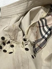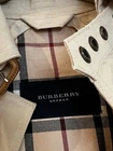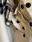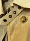 Burberry London Trench Coat, crafted from durable cotton with a waxed finish. It has stains from inside- in the underarm areas from old age glue - please see photos. Not sure is this can be cleaned. Missed button at the back slit. No belt. Priced accordingly. From the outside seem reasonably good-fair. Armpit to armpit 20”, length 35” Designed with a nod to its British heritage, this Burberry trench coat is tailored to fit a regular size 6, with a classic fit that flatters the figure without sacrificing comfort. The coat is unlined, making it ideal for the spring and summer seasons when layered clothing is unnecessary.