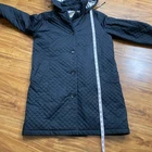Burberry Black Quilted Removable Hood Coat. 100% authentic. Wardrobe classic and perfect for the fall, autumn and winter. Classic Burberry plaid on the inside (wool mix on the liner), removable hood, pockets. Business casual, preppy, classic, luxury, streetwear, professional, urban, work, career, classy, corporate, office, corporatecore, academia, quiet luxury, Hamptons, retro, autumn, spring, fall and winter. In good used condition- a few loose threads on the outer. A few tiny marks but likely to come out once dry cleaned. Size 6 **Please ask questions before purchasing. Thanks for stopping by.
