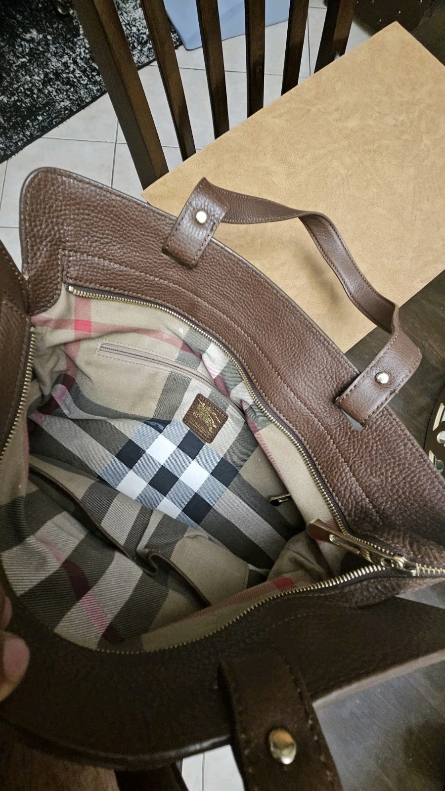 *** Authentic Burberry *** The Burberry Women's Tote Bag is a stylish and practical handbag made from canvas and leather in a classic brown color. This medium-sized rectangular bag features a zip closure, gold hardware, and double brown leather handles with a 7-inch drop. The interior is lined with beige canvas and includes inner pockets for organization. Perfect for casual occasions, this tote exudes a timeless elegance with its solid pattern and iconic Burberry brand.