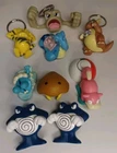 This lot of 9 vintage Burger King Pokemon keychains and figures and one Froakie friction car are an original collectible from Bandai. The keychains feature characters from the popular Pokemon franchise, making them a sought-after item for collectors of Pokemon memorabilia. These keychains are not modified and are considered vintage, adding to their appeal for fans of both Pokemon and nostalgic Burger King promotional items.