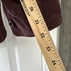 Wrap up in timeless style with the Banana Republic Burgundy Jacket, a perfect addition to your wardrobe for the cooler seasons. Crafted from high-quality cotton with a soft, yet durable corduroy fabric type, this coat ensures both comfort and longevity. Its solid burgundy hue offers a versatile look that pairs well with any outfit, whether you're out for a casual stroll or traveling on business. The coat features a classic collared design with a point collar style, giving it a refined and sharp appearance. A quilted accents add a touch of texture and flair. Practical elements include a zip closure, convenient pockets, and a machine washable garment care for easy maintenance. Ideal for fall, spring, and winter, this short winter jacket keeps you looking sharp and feeling cozy. Height: 27 inches Chest Length: 20 inches Sleeve Length: 22 inches