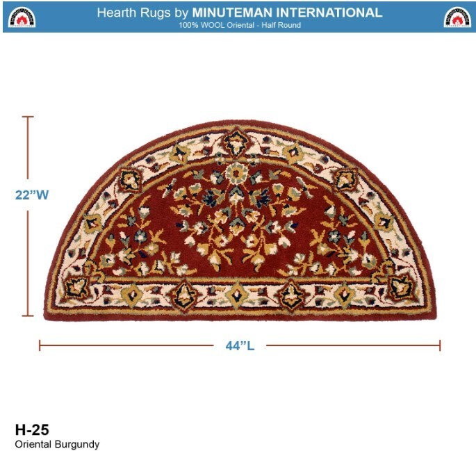 Minuteman International Burgundy Oriental Wool Hearth Rug, Half Round About this item Wool Imported Measures 44-in L x 22-in W, Half Round Rich dark red background with traditional persian carpet design in earthtones Made of 100% virgin wool Handtufted plush pile is soft and comfortable All Minuteman Hearth Rugs meet federal requirements of part 1631 (ff2-70) for surface flammability of small carpets Brand Minuteman International Size 44-in x 22-in Material Wool Weave Type Tufted Item Weight 5 Pounds . We offer FREE shipping on all orders! . We ship within Five business days of payment, usually sooner. . We use a selection of shipping services such as UPS, FedEx, USPS etc. . We only ship to the lower 48 states, no APO/FPO addresses or PO Boxes allowed. . Local pickups and combined shipping options are not provided at this time. . Your satisfaction is a wonderful reward for our efforts. Please assist us by leaving a positive review if you feel pleased with our service. . In the event that you encounter any difficulties related to your order, please do not hesitate to reach out to us directly through the Messaging system on the Ebay platform. Kindly consider opening a COMPLAINT or a RETURN REQUEST as a last resort, only after all other possible measures have been attempted and we have been unable to provide you with assistance. . We will get in touch with you within 24 hours and make every effort to ensure your satisfaction. . Please rest assured of our service quality.