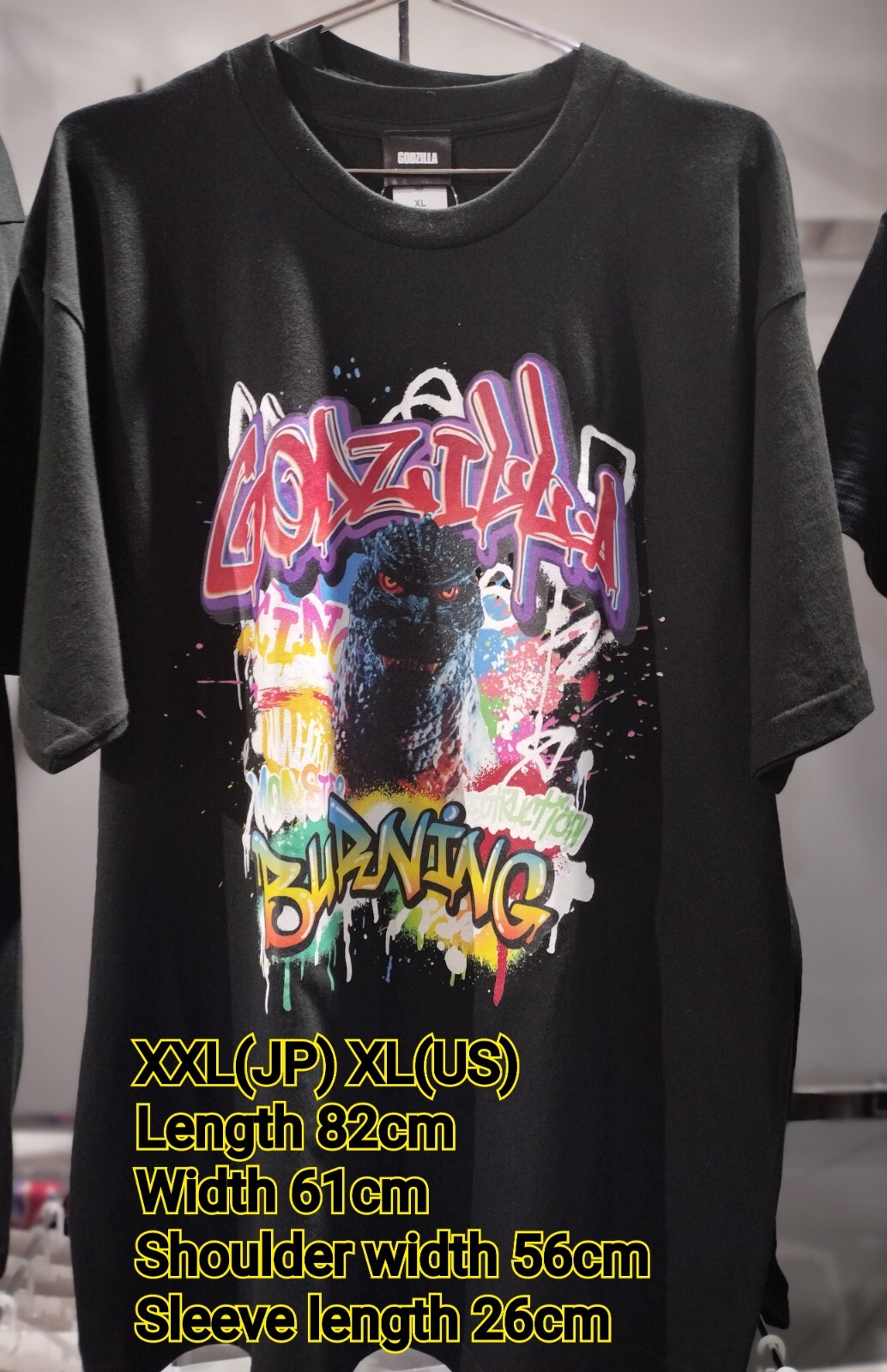 Godzilla (1995) T-shirt, Godzilla Store, Toho Burning Godzilla Description About This Items L(JP) M(US) Length 74cm Width 55cm Shoulder width 50cm Sleeve length 22cm XL(JP) L(US) Length 78cm Width 58cm Shoulder width 53cm Sleeve length 24cm XXL(JP) XL(US) Length 82cm Width 61cm Shoulder width 56cm Sleeve length 26cm 100% cotton Condition New Shipping (FedEx , DHL,Japan Post) We always send the item with a tracking number. So please place an order without any concern on delivery. You can always track the delivery status. Shipping is only available to the address registered in eBay. If you want us to send another address, please change your address on eBay and then place an order. Shipping is available from Monday to Friday. Weekends are not available because freight (shipping) companies are closed. We do not mark merchandise values below value or mark items as ?gifts? ? Japan, US and International government regulations prohibit such behavior. About Importer's Obligation Import duties, taxes, and charges are not included in the item price or shipping cost. These charges are the buyer's responsibility. Please check with your country's customs office to determine what these additional costs will be prior to bidding or buying. Thank you for your understanding.