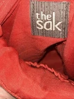 The Burnt Orange the sak Cross Bodied Flawless Genuine Pebbled Leather Bag is a medium-sized square-shaped bag with a zip closure. The bag features an orange handle/strap color, brass hardware, tassel accents, and stitching details. It is perfect for various occasions such as travel, weddings, parties, casual outings, and workwear. The bag has a pebbled leather finish, lined interior with inner pockets, and an adjustable crossbody strap. The exterior color is a striking burnt orange, making it a cute and stylish accessory for women.
