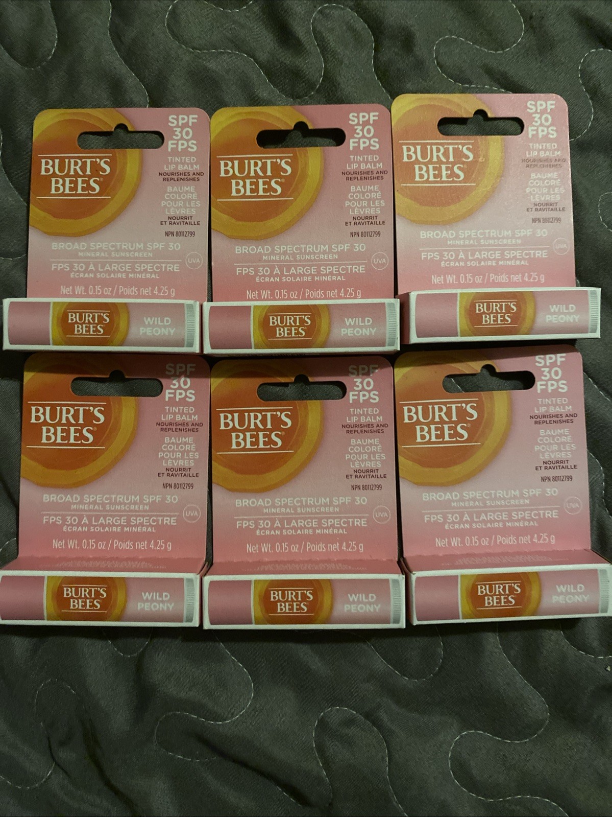 Burt's Bees Tinted Lip Balm SPF 30 in Wild Peony is a 100% natural lip balm with a beautiful pink tint. Made with Shea Butter, this lip balm is perfect for sensitive skin and provides SPF 30 sun protection. Unscented and with a rose scent, it is a perfect gift for Mother's Day. The solid stick formulation ensures easy application and long-lasting moisture for your lips. Made in Canada, this lip balm is a must-have for anyone looking to treat their dry lips with a natural and effective product. Expiration date March 2025 I have 8 left