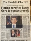 Bush v. Gore Florida Certifies 2000 Election Result November 27 2000 Historic Collectible Newspaper The Charlotte Observer Do not miss out on your chance to own or gift a unique piece of history! Bush v. Gore Florida Certifies 2000 Election Result published in the Monday, November 27 2000 The Charlotte Observer (Charlotte, NC USA) newspaper. Headline: Florida certifies Bush; Gore to contest result - 537 Votes Separate The Candidates. Front section with headline, photos and articles covering the historic events! The 2000 United States presidential election in Florida took place on November 7, 2000, as part of the nationwide presidential election. Florida, a swing state, had a major recount dispute that took center stage in the election. The outcome of the 2000 United States presidential election was not known for more than a month after balloting because of the extended process of counting and recounting Florida's presidential ballots. After an intense recount process and the United States Supreme Court's decision in Bush v. Gore, Bush won Florida’s electoral votes by a margin of only 537 votes out of almost six million cast and, as a result, became the president-elect. The process was extremely divisive and led to calls for electoral reform in Florida. 12 pages original. Size is approximately 12.5"x24". No significant imperfections or damage observed. Small imperfections are not necessarily uncommon given the age of the piece. Overall, this piece is in Very Good condition and will absolutely be an impressive display or archive item for any collector, enthusiast, or historian. Great for framing. A unique gift. Most printed items are often from my personal collection. I have been an enthusiast for over 25 years. Unfortunately, I just cannot keep them all. Each is a unique pre-loved vintage, historic, and/or collectible piece. Obvious imperfections or damage are noted in the description and photographed. Typically this kind of item is gently rolled with protective plastic to limit moisture and shipped in a document tube or equivalent. Send a message if you have questions. Adam