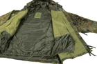 Bw Flecktarn ECWCS Cold Wet Weather Parka Bundeswehr Camouflage Jacket Small The description of this item has been automatically translated. If you have any questions, please feel free to contact us. BW Flecktarn ECWCS Gen I Parka Size Small Regular Fixed Cobra hood with peak Velcro and press studs for attaching additional camouflage material 2-way zipper under double Cover strip with hidden snap fasteners Armpit ventilation openings with zipper 2 large outside pockets with Velcro and press studs Patched sleeve pocket on the left side Sleeves adjustable with Velcro Snow apron inside Material made from breathable, waterproof 3-layer laminate Material: Upper material 100% nylon Membrane 100% polyurethane Lining 100% nylon Water column 5000mm Breathability: 3,000 gr/m² in 24 hours BW Flecktarn ECWCS Gen I Parka Size Small Regular Fixed Cobra hood with peak Velcro and press studs for attaching additional camouflage material 2-way zipper under double Cover strip with hidden snap fasteners Armpit ventilation openings with zipper 2 large outside pockets with Velcro and press studs Patched sleeve pocket on the left side Sleeves adjustable with Velcro Snow apron inside Material made from breathable, waterproof 3-layer laminate Material: Upper material 100% nylon Membrane 100% polyurethane Lining 100% nylon Water column 5000mm Breathability: 3,000 gr/m² in 24 hours Marke MMB ECWCS Flecktarn Thema Parka Cold Wet Weather