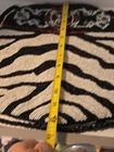 Add a touch of bohemian elegance to your outfit with this stunning By Kate Geddes TALISMAN Beaded Purse. This medium-sized shoulder bag features a striped pattern and is made of soft viscose material with a satin lining. The bag has a magnetic and snap closure, with a black handle drop of 18 inches and a strap made of glass beads. The Aztec-themed bag has inner pockets, and the beaded accents add a unique touch to the design. The TALISMAN model is a must-have for any fashion-conscious woman, and this purse is perfect for any occasion. Made in India, this purse is a great addition to your collection. Beautiful ZEBRA and Butterfly Designs. Great quality