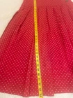 The Byblos Italy Vintage Midi Polka Dot Flare Skirt in Red is a stylish and versatile addition to any wardrobe. Made from a comfortable cotton blend, this high-rise skirt features a flattering A-line silhouette with a hem length that falls to a midi length. The polka dot pattern gives it a fun and boho character, perfect for various occasions like travel, parties, casual outings, or even business meetings. The skirt is secured with a zip closure and adorned with button accents, adding a touch of vintage flair to your look. Perfect for the warmer seasons of summer, fall, and spring, this skirt is a timeless piece with an 80s-inspired theme.