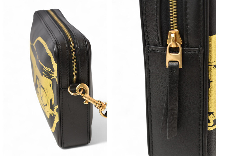 Celine clutch pouch/clutch bag Mustang print black/gold Description Item No ce-19-001 Brand CELINE Item Clutch bag Model Number M382095 Gender unisex Notation Color black Country of Origin Italy Material Genuine Leather Size(CM) W20.5cm x H14cm x D3.8cm Height:14cm Length:20.5cm Depth:3.8cm Detachable hand strap: around7.9" Size(Inch) W8.1 x H5.5 x D1.5inch Height:5.5inch Length:8.1inch Depth:1.5inch Detachable hand strap: around7.9" Specification Switching Type:Fastener type Accessory storage bags Production features This clutch bag from Celine is made of luxurious, soft leather. The Mustang is embossed in gold. It can be carried in a way that suits your style, and can be used in a wide variety of ways, such as as a clutch, pouch, or bag-in-bag! Condition Details Rank SA ·Second-hand goods. 【 Outer 】 ・There are no noticeable scratches or stains. There are some scuffs and small scratches on the surface. 【 Inner 】 ・There are no noticeable scratches or stains. It is in good condition.