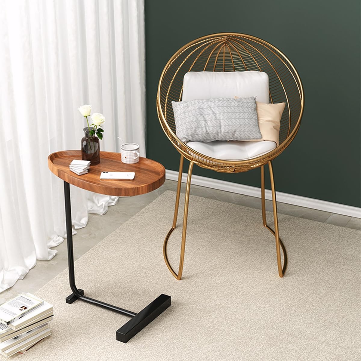 Features: Perfect small side table for bedroom and living room. Fits perfectly in the spare nook of the bed and sofa With a bouquet of flowers, a magazine, and a cup of coffee, enjoy your own leisure time in a lazy afternoon Attributes: Name: bed and sofa side table Color: brown, black, white Material: steel and wood Size: 24 "H x 18 "L x 12" W Attention: 1. As the sizes are measured manually. Please allow 1-3 cm of error. 2. Due to different monitor pixels, there may be a slight color difference between the physical object and the picture you see on the website. 【 Wooden C Table End table】 This small C side table with modern industrial style is suitable for placing beside your bed, sofa, or other small spaces in the living room and bedroom. It can hold daily items such as laptops, magazines, snacks or drinks, and also serve as a perfect interior decoration. 【 C-shaped Side Table 】 This couch side table adopts a compact C-shaped design, with legs that can slide into the bottom of the sofa, bed, or chair. At the same time, the 24 inch ergonomic height design allows you to use it more comfortably and perfectly when eating or working. 【 Sturdy Material】Our c shaped end table is made of sturdy square steel pipe frame and high-quality artificial wood, which is sturdy, stable, with a maximum load capacity of up to 45 pounds. Wooden grain tabletop easy to clean, with an area of 18 "L x 12" W 【 Easy to Assemble】The c shaped side table has a simple structure, and after receiving the package, you only need to follow the steps to connect the desktop and frame together. It's very simple and effortless. If you encounter any problems during the delivery or installation process, please feel free to contact us at any time. 【Ideal Gift】Give this perfect small c side table to your friends around you, with a bouquet of flowers, a magazine, and a cup of coffee, so that they can enjoy their own leisure time on a lazy afternoon!