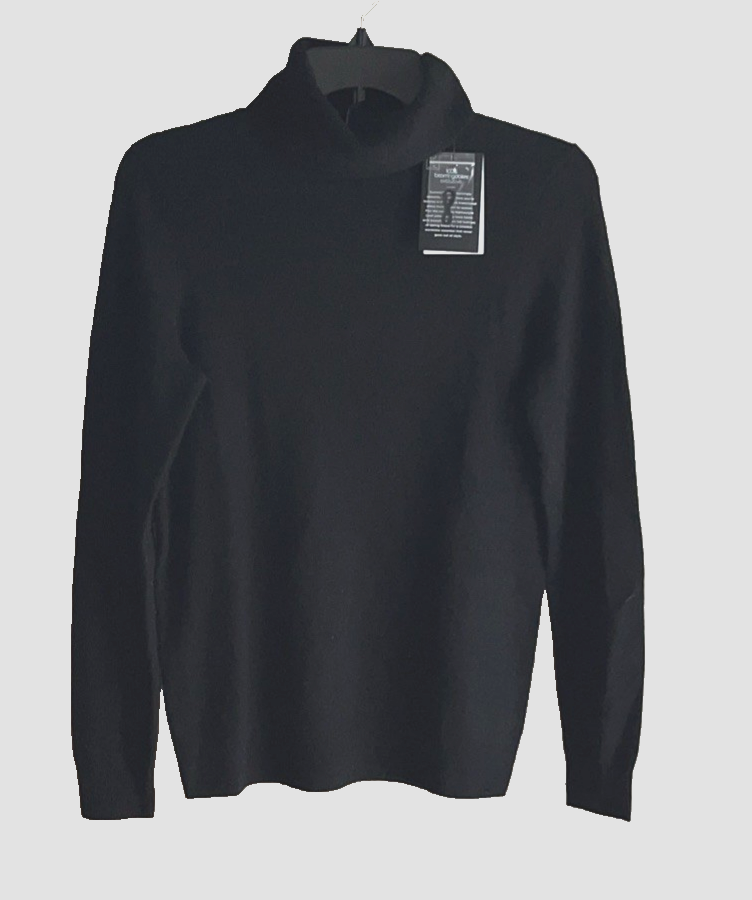 C by Bloom women's 100% Cashmere Turtleneck Sweater size: Small color: Black 100% Cashmere Turtleneck Rib knit trim retail $178 underarm to underarm 17" collar seam to bottom 25" C85