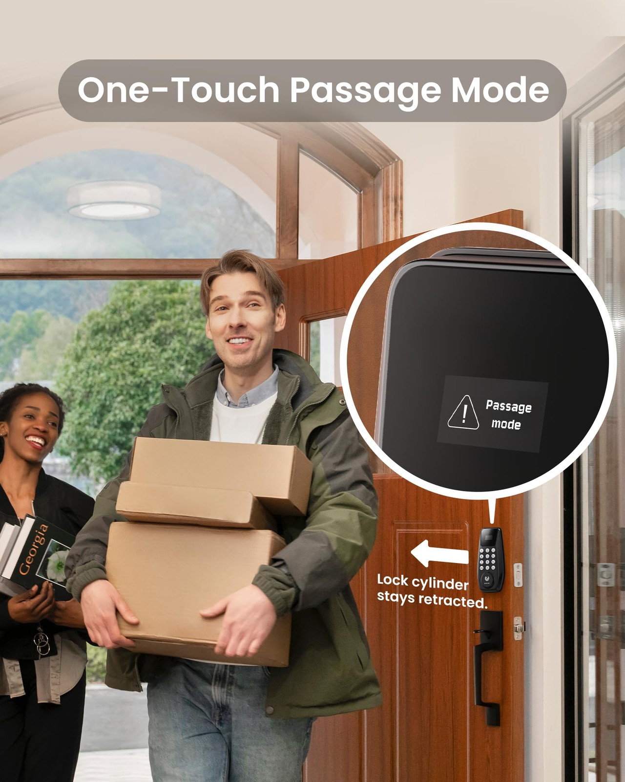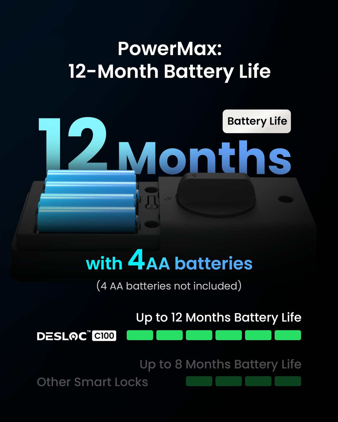 ๐๐จ๐๐ค๐๐ฎ ๐๐ข๐ฌ๐ฉ๐ฅ๐๐ฒ: Manage settings, set passcodes, assign users, and view alerts on a smart lock with a built-in display that provides a clear overview. No internet connection is required "๐๐๐ฒ๐ฅ๐๐ฌ๐ฌ ๐๐ง๐ญ๐ซ๐ฒ: Unlock using passcodes and store up to 100 PINs, with two physical keys provided as emergency backups. " ๐๐ซ๐๐ฆ๐ข๐ฎ๐ฆ ๐๐๐๐ฎ๐ซ๐ข๐ญ๐ฒ: This smart lock for front door is BHMA Grade 3 certified, verifying that specific components of the product have met rigorous testing standards. It features a durable lock cylinder, IP54-rated weather resistance, anti-peeping PIN code protection, and an auto-lock function for enhanced safety. Built to perform reliably in extreme conditions, it can withstand temperatures from -22โ to 158โ (-30โ to 70โ). Your data is stored locally, reducing the risk of duplication and remote attacks ๐๐-๐๐จ๐ง๐ญ๐ก ๐๐๐ญ๐ญ๐๐ซ๐ฒ ๐๐ข๐๐: The C100 smart lock is equipped with the PowerMax smart power management system, ensuring up to 12 months of battery life. It features a built-in low-battery indicator and a Type-C emergency power port. *Battery life may vary depending on usage frequency ๐๐๐ฌ๐ฒ ๐๐ง๐ฌ๐ญ๐๐ฅ๐ฅ๐๐ญ๐ข๐จ๐ง ๐๐ง๐ ๐๐ฑ๐๐๐ฅ๐ฅ๐๐ง๐ญ ๐๐ฎ๐ฌ๐ญ๐จ๐ฆ๐๐ซ ๐๐๐ซ๐ฏ๐ข๐๐: Install the front door lock in minutes with just a screwdriver and automatic door swing direction detection. The interior lock back cover with adhesive allows for hands-free setup. offers a 1-year product warranty and lifetime after-sales service. Contact us via hotline (Mon-Fri, 9am-5pm EST) or 24/7 email support ๐๐จ๐๐ค๐๐ฎ๐ ๐๐ข๐ฌ๐ฉ๐ฅ๐๐ฒ: Manage settings, set passcodes, assign users, and view alerts on a smart lock with a built-in display that provides a clear overview. No internet connection is required ๐๐๐ฒ๐ฅ๐๐ฌ๐ฌ ๐๐ง๐ญ๐ซ๐ฒ: Unlock using passcodes and store up to 100 PINs, with two physical keys provided as emergency backups. ๐๐ซ๐๐ฆ๐ข๐ฎ๐ฆ ๐๐๐๐ฎ๐ซ๐ข๐ญ๐ฒ: This smart lock for front door is BHMA Grade 3 certified with a robust lock cylinder, IP54, anti-peeping PIN code protection, and auto-lock. Your data is stored locally, reducing the risk of duplication and remote attacks ๐๐-๐๐จ๐ง๐ญ๐ก ๐๐๐ญ๐ญ๐๐ซ๐ฒ ๐๐ข๐๐: The C100 smart lock is equipped with the PowerMax smart power management system, ensuring up to 12 months of battery life. It features a built-in low-battery indicator and a Type-C emergency power port. *Battery life may vary depending on usage frequency ๐๐๐ฌ๐ฒ ๐๐ง๐ฌ๐ญ๐๐ฅ๐ฅ๐๐ญ๐ข๐จ๐ง ๐๐ง๐ ๐๐ฑ๐๐๐ฅ๐ฅ๐๐ง๐ญ ๐๐ฎ๐ฌ๐ญ๐จ๐ฆ๐๐ซ ๐๐๐ซ๐ฏ๐ข๐๐: Install the front door lock in minutes with just a screwdriver and automatic door swing direction detection. The interior lock back cover with adhesive allows for hands-free setup. offers a 1-year product warranty and lifetime after-sales service. Contact us via hotline (Mon-Fri, 9am-5pm EST) or 24/7 email support