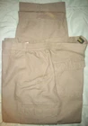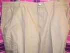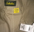The CABELA'S Trail Hiker Cargo Pants are made for men in a size 42 waist and 30 inseam, featuring a rugged and relaxed fit in khaki canvas fabric. These straight-leg pants have cargo and slash pockets with a pleated front and button and zipper closures. The design is ideal for various occasions such as travel, casual wear, or workwear, offering comfort, easy care, and wrinkle resistance. The pants are part of the Cabela's product line, suitable for outdoor activities and a retro, preppy style.