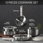 Exclusive Triple-bonded Stainless Steel: Long-lasting stainless steel base for enhanced durability and optimized for induction efficiency. Kitchen Storage Hack: Ideal for stacking and nesting, optimal storage solution. Quick Heating: A wider 3-ply stainless steel base design delivers efficient heat conductivity, and faster & more consistent heating. Chef Use & Chef Abused: High Heat Tolerant 600°F, harder stainless steel material making it resistant to scratching, staining. Long Lasting: Longer lifespan of the cookware set, designed with a wider base for efficient heating and stirring, and sealed, flared rims for precision pouring. Optimizing for Dishwasher: Dishwasher friendly to save your cleaning time. Versatile Stoves Use: From all kinds of stovetops to Oven, to Table, to Dishwasher, this multi-functional pots and pans is the perfect set. Set Includes: 10'' skillet, 10' saute pan, 9''/8''/7'' sauce pan, 10''/9''/8'' silicone lid, 8''/7'' storage lid, 2*handles.