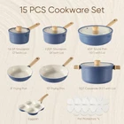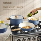 About this item Meet All Your Demand: This 15 pieces cookware set includes 8" and 10" frying pan, 3.5qt saute pan with lid, 4.5 QT stock pot with lid, 1.6qt and 2.5qt sauce pan with lid, egg pan and 4 pieces of pan protector, catering to your every culinary requirement. Time-saving Cleaning: Enjoy effortless cooking and cleaning with exceptional performance and ultra-nonstick coating. Even Heating: Even&rapid heat delivery without hot spots so food cooks the same everywhere on the pan while boiling, simmering, reheating. Lasting Performance: The reinforced die-cast aluminum construction of this kitchen pots and pans set make it resistant to wear and tear, allowing it to withstand frequent usage without compromising its performance. Service & Guarantee: Each CAROTE cookware passes strict multi inspection process. We provide 12 months from the date of purchase. Please don't hesitate to reach out if any quality problem. You will be guaranteed to get satisfying solution.