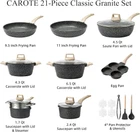 Store New Arrivals Add to Favorite View Feedback Contact CAROTE 21Pcs Pots and Pans Set Nonstick, Cookware Set Black Granite Induction Kitchen Cooking Set W/Frying Pans & Saucepans(Pfos, PFOA Free) Description Item model number A08623 Manufacturer CAROTE Closure Material Nonstick cookware sets Size 21 Piece Color Classic Black Brand CAROTE Material Aluminum, Granite Country of Origin China Is Dishwasher Safe No Item Weight 27.5 pounds Is Oven Safe No Handle Material Bakelite With Lid Yes Material Type Free PFOA Free, PFAS Free, Lead Free Included Components 9.5/11 inch Frying pans, 1.7/2.4 qt saucepans with lids, 4.3/6.5 casseroles 4.5 saute pan lid, 3 utensils, 4 protectors Special Feature Gas Stovetop Compatible, Electric Stovetop Compatible, Induction Stovetop Compatible, Manual Product Dimensions 12 x 12 x 9 inches Compatibility Options Nonstick cookware sets Number of Pieces 21 Sturdy Die-Cast Aluminum Body: The reinforced die-cast aluminum construction of this kitchen pots and pans set ensures durability and reliability for long-term use while still maintaining a lightweight design. This lightweight feature brings convenience to your cooking experience. CAROTE 21-Piece Cookware Set Includes : 9.5 inch Frying Pan, 11 inch Frying Pan, 1.7 QT Saucepan with Lid and steamer, 2.4 QT Saucepan with Lid, 4.3QT Casserole Pot with Lid, 6.5QT Casserole Pot with Lid , 4.5QT Saute Pan with Lid, *3 Utensils,4*Pan Protector Eco-friendly White Granite – A top level, harder nonstick granite material with 10x Ultra Non-stick performance, PFOS/PFOA free, our cookware ensures your daily cooking is always safer and healthier. Easy To Clean – Just wipe it with a paper towel or rinse it with water, Less CO2 emission and Less water wasted.Recommend hand wash the cookware as it is really easy to clean. Suitable For All Stoves – Heats up quickly and evenly with extended bottom design. High magnetic conductive stainless steel base allows our nonstick cookware to work on all cooktops, including induction. Product Description A Set For All Occasion 1 What's Included 2 Pots and Pans 3 Frying Pan 4 Large Cassreole 5x Extra Nonstick Performance A top level nonstick granite pan with 5x Ultra Non-stick performance. Even the simplest recipes get star treatment with Carote's unique and stylish kitchen pots and pans set. We Care, We Protect The natural material extracted from granite is health for daily use. With the super nonstick property,Carote classic pots and pans set is welcomed over 30 countries and regions. Carote Core-Tech makes our enhanced granite cookware with: Ultra Nonstick Performance. Extra Durability. Super easy to clean. 1 Super Easy to Clean 2 Heat Up Fast and Evenly 3 Less Oil Intake Take Your Cooking to the Next Level with Carote ABOUT US We offer the best prices around on high quality products. Our E-store includes media such as books, movies, music and games while offering electronics, toys, sporting apparel, clothing, tools, general home, garden items and more. SHIPPING We are always working hard to ensure your package arrives as soon as possible. Please understand that some factors like weather, high postal traffic, and the performance of shipping companies are outside of our control. For shipping outside of the continental USA, we only use eBay's Global Shipping Program.The item is shipped to KY and then sent to the rest of the world. International customers are responsible for all duties and taxes. Continue to check out in order to calculate costs for shipping the item to your country. Messages regarding eBay's Global Shipping Program MUST be directed at eBay EXCLUSIVELY. RETURNS We offer a 30-Day Return Policy on items which you are not completely satisfied with. You have the option for a full-refund or an exchange of the item. No returns are available on items shipped outside of the USA. PAYMENT We accept PayPal. CONTACT US This page content is yet to come Please ad us to your favorite seller and visit again later Thank You CUSTOMER SATISFACTION We try our very best to make sure every customer is completely satisfied. If there's a problem, message us! We're happy to help. WE ACCEPT Copyright © 2021 AutoDS. | All Rights Reserved