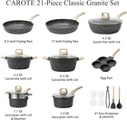 Easy To Clean – Just wipe it with a paper towel or rinse it with water, Less CO2 emission and Less water wasted.Recommend hand wash the cookware as it is really easy to clean. Eco-friendly White Granite – A top level, harder nonstick granite material with 10x Ultra Non-stick performance, PFOS/PFOA free, our cookware ensures your daily cooking is always safer and healthier. CAROTE 21-Piece Cookware Set Includes : 9.5 inch Frying Pan, 11 inch Frying Pan, 1.7 QT Saucepan with Lid and steamer, 2.4 QT Saucepan with Lid, 4.3QT Casserole Pot with Lid, 6.5QT Casserole Pot with Lid , 4.5QT Saute Pan with Lid, *3 Utensils,4*Pan Protector Sturdy Die-Cast Aluminum Body: The reinforced die-cast aluminum construction of this kitchen pots and pans set ensures durability and reliability for long-term use while still maintaining a lightweight design. This lightweight feature brings convenience to your cooking experience. On Dec 11, 2024 at 18:23:43 PST, seller added the following information: