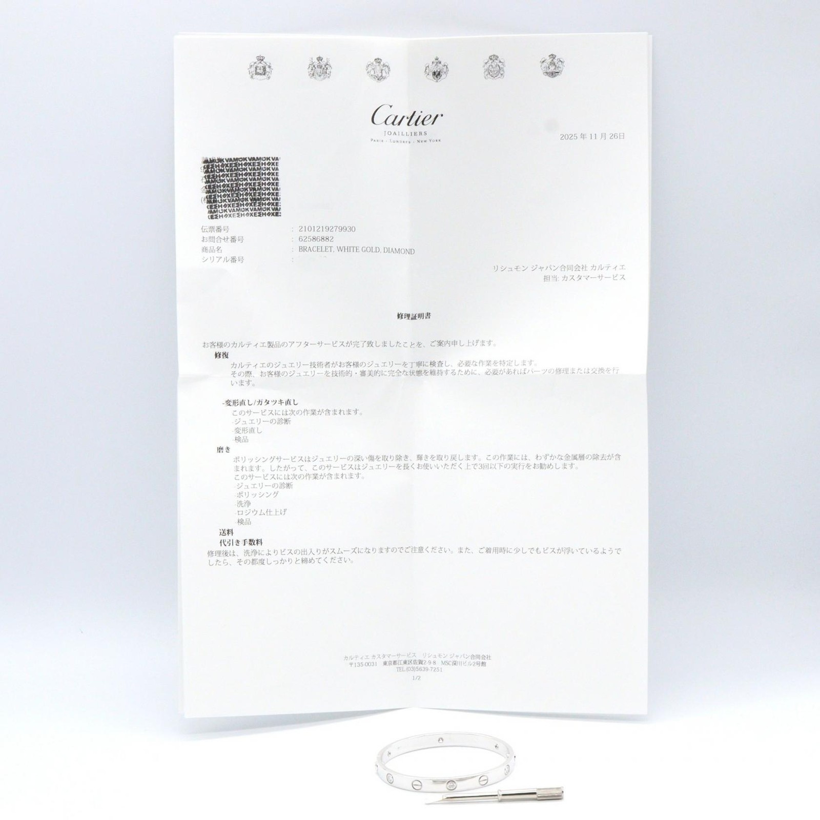 CARTIER Love 6P Diamond Bracelet 18KWG White Gold Used Women #16 Description / Specification Brand Name CARTIER Item Name CARTIER Love 6P Diamond Bracelet 18KWG White Gold Used Women #16 Color Silver‐ish colors Material K18WG(White Gold) × diamond Metal Purity K18WG(White Gold) × diamond Size Band Length:15cm(5.9") Weight 28.9g Accessories Repair certificate Accessories not stated are not included. (If there is no mention of a box or dust bag, they are not included either.) Wrist Size(Approx) 〜15cm(-5.9") Instore Code 2101219279930 Up Date 2025/12/06 Condition Pre-owned used Bracelet by CARTIER in good condition . Outside Condition There is some usability, scratches, rubbing, and stain. Inside Condition There is some usability, scratches, rubbing, and stain. Remarks There are some signs of wear. *This product has been polished, but there may be small scratches that cannot be removed. Thank you for your understanding. Please take a look at the descriptions and the pictures above to check the condition of the item before the purchase. Rank Pristine New, Not used. Excellent Excellent, Allmost as good as new. Very Good A slightly used. Good There are a few scratches, stains and looks a little used. Fair + There are some noticeable scratches and stains. Looks used. Fair There are some noticeable scratches and stains. Looks obviously used. Poor + There are many scratches and stains. Looks very used. Poor Looks very used, but still usable. About Authenticity We have a large selection of luxury brand products We guarantee that all of the items we list and sell are authentic. Feel free to contact us if you have any inquiries or concerns. We are approved seller from Tokyo Metropolitan Police License No : 301061906960(Used Item Seller ) In addition, We also are a member of the Association Against Counterfeit Product Distribution (AACD), and we promise to have no bogus under any circumstances. Please read before order Shipment cannot be marked as a 'gift' or with altered price due to the custom declaration laws. Import duties, taxes, or other additional fees will be charged by your local customs. We are not responsible for any customs and taxes applied to your order. All fees imposed during or after shipping are the responsibilities of the customer (tariffs, taxes, etc.). Please inquire the details of import duties or taxes at the customs office in your country directly before making an order. Payment & Shipping Payment We only accept payments via Managed Payments. Shipping All items will be shipped from Japan. We can only make shipment to the registered address with your ebay account. All orders are processed within 3-5 business days. Orders are not shipped on weekends or holidays. 1.Shipments will be made by DHL. 2.For orders which are not able to be shipped by DHL, they will be shipped by Fedex or UPS. 3.Orders for China will be shipped via EMS of the Japan Post. 4.We currently suspend shipping services to APO/FPO, Brazil, Chile, Indonesia, Mexico, Peru, Philippines, Russian Federation, and Ukraine. Delivery time 1.Delivery usually takes approximately 3-10 business days 2. Shipments might be delayed due to the following reasons: a)Bad weathers b)Public holidays c)Delay at the customs office Returns/Cancellation Policies As we selling our items on other websites and in our retail stores in Japan at the same time, if the item was sold out before your purchase, your order will be cancelled with a full refund Customers are allowed to return the item within 30 days from the delivery or pick up date for a full refund. Items without the security tag are not allowed to be returned. All fees imposed during the return shipping are the responsibilities of the customer Please contact us before starting a return Please provide us the tracking number once return shipment is made. If the mistake caused by human error is occer, please forgive me for cancelling by us. See more Policies & Description