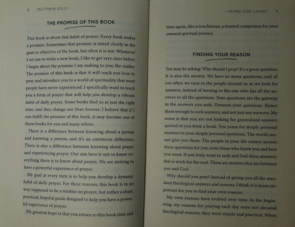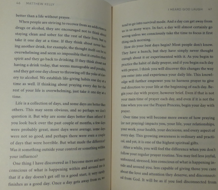 CASE OF 64 BRAND NEW BOOKS Paperback edition. NEW UNOPENED CASE. Only shipping to lower 48 contiguous states. Authored by Matthew Kelly, New York Times Best Selling Author. Ideal for Anyone seeking inspiration, spiritual awakening, inner peace. This book is ideal for anyone interested in having Better communication with Their Own God. Ideal for groups like AA, substance abuse, churches, therapists, etc. (Or for resale.) The words "God", "Lord", "Yahweh", "Adonai", "Christian", "Jesus" & "Christianity" appear, but no attempt is made to "convert" you to any specific religion. It's meant as a non-denominational worship guide. This is more of a "Self Help" type book with a Positive upbeat attitude about improving your life thru prayer to Your own God for Your own life and needs.
