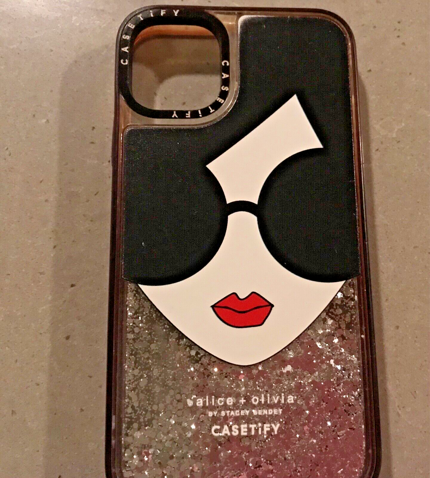This stylish Casetify impact case is the perfect accessory for your Apple iPhone 11. Featuring a sleek black design with glitter accents, this case is sure to make a statement. The case is made of high-quality silicone, gel, and rubber materials, providing durable protection for your phone while still allowing for easy access to controls. The Alice and Olivia design is perfect for those who love fashion and want their phone to stand out. The case is compatible with Apple products and has been specifically designed for the iPhone 11. With its accessible controls and stylish design, this Casetify case is a must-have for anyone looking to protect their phone while still maintaining a fashionable look. Casetify case Alice and Olivia by Stacy Sendet iPhone 11 In very good condition, only one owner