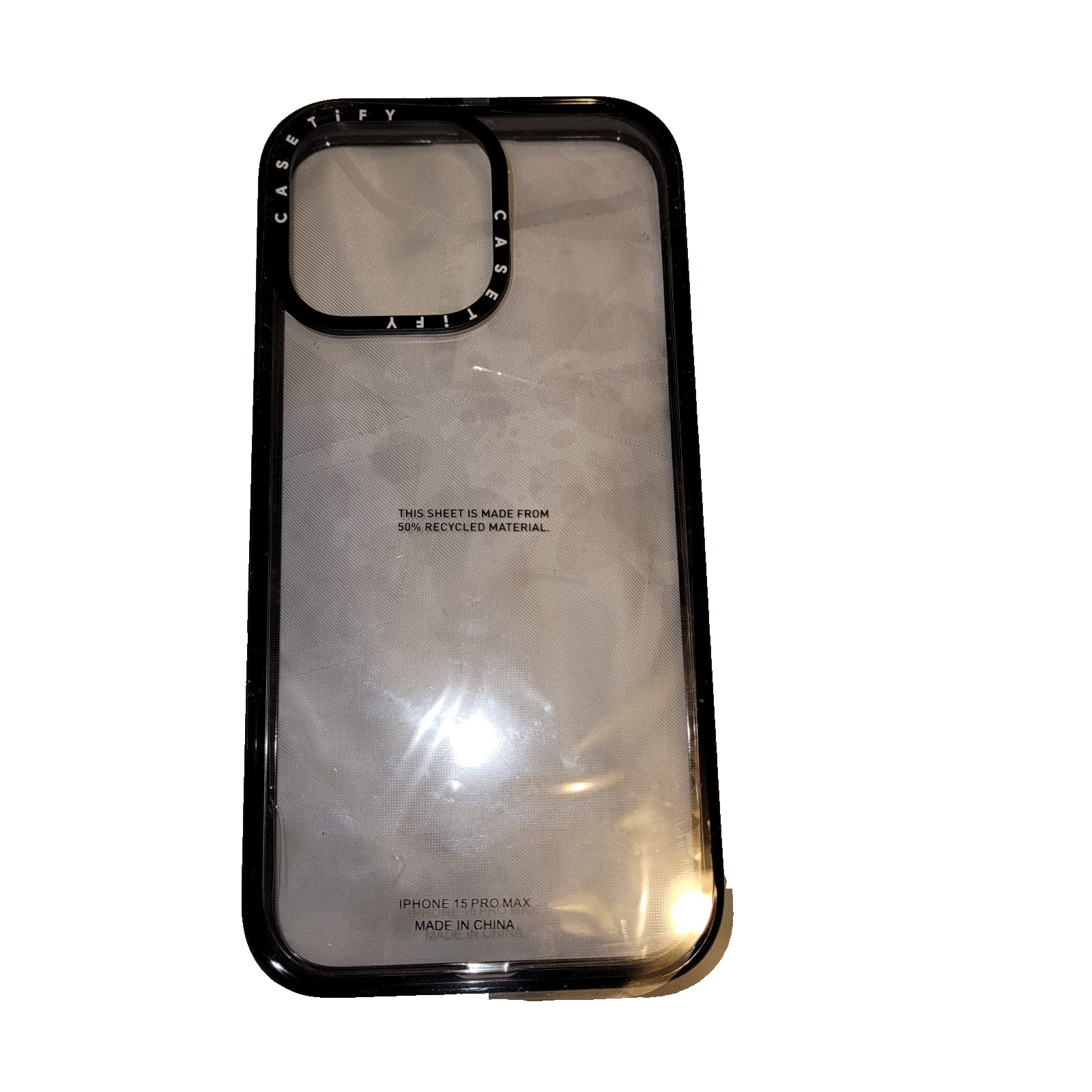 The CASETiFY Impact Case is designed for the Apple iPhone 15 Pro Max. It features a clear design with black accents, providing protection against impacts. The hard case ensures durability and adds a stylish touch to your device.