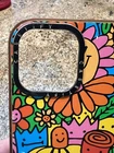 Casetify orange, yellow, pink and blue retro flower iphone 13 pro max case. Flowers by Matthew Langille wireless charging and magsafe compatible 6.6 ft drop protection made of 65% recycled materials