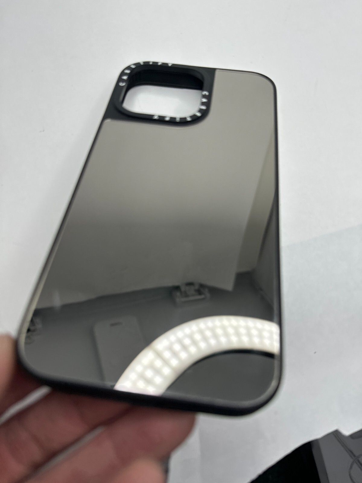 CASETiFY Mirror Case Magsafe for iPhone 15 Pro Max 6.7" Silver with Black Bumper very good condition About this item Designed for protection with raised bezels for your screen and camera lens, 4.9 ft. of drop protection, and 1x military-grade standard protection, no need to blink if you drop it, because your Apple iPhone 15 Pro Max is safe with the Mirror Case with MagSafe for Apple iPhone 15 Pro Max. With an electroplate-coated polycarbonate structure, your Apple iPhone 15 Pro Max now functions as a mirror, minus the glass! Perfect for checking your reflection on-the-go, so you and your phone look flawless. CASETiFY's upgraded Mirror Case CTF-12692439-16006006 features new side sockets that seamlessly attach phone charms.