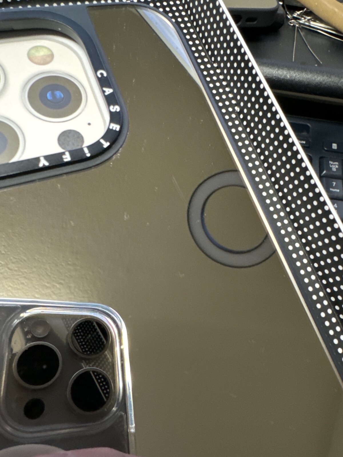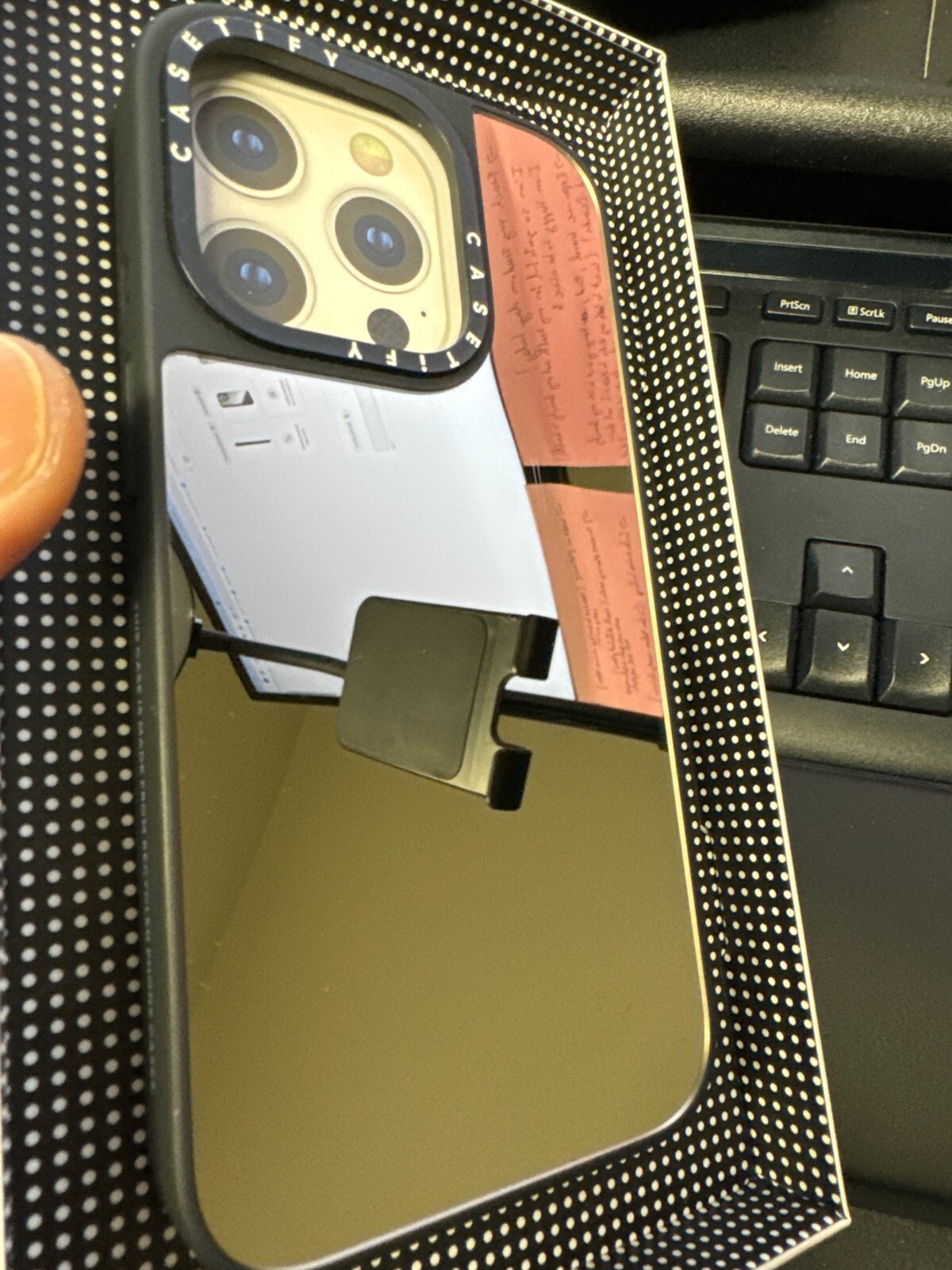 CASETiFY Mirror MagSafe Case for iPhone 15 Pro 6.1" Silver with Black Bumper there are some light scratches. About this item Designed for protection with raised bezels for your screen and camera lens, 4.9 ft. of drop protection, and 1x military-grade standard protection, no need to blink if you drop it, because your Apple iPhone 15 Pro is safe with the Mirror Case with MagSafe for Apple iPhone 15 Pro. With an electroplate-coated polycarbonate structure, your Apple iPhone 15 Pro now functions as a mirror, minus the glass! Perfect for checking your reflection on-the-go, so you and your phone look flawless. CASETiFY's upgraded Mirror Case CTF-12692439-16006000 features new side sockets that seamlessly attach phone charms.