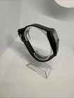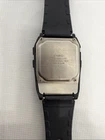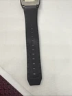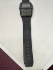 This Casio DBC-150 Data Bank 150 Calculator watch is a vintage piece from the 2000-2009 era. The watch features a black bezel and a gray dial with no hour marks. It has a two-piece strap made of black resin or rubber and a rectangular case made of stainless steel and resin. The watch is untested and comes without papers or original packaging. It has a quartz movement and a calculator feature. The watch is suitable for casual or classic styles and has a digital display. This Casio Databank watch is a perfect addition to any vintage watch collection. This watch is pre owned and is in great condition. Watch does have some use to it, shown in pictures. Watch is fully functional and its calculator feature does work as it should. I do not have its original box nor tags. Comes as shown