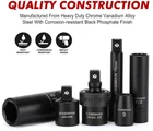 CASOMAN 3/8" Drive Impact Socket Set, 48 Piece Standard SAE and Metric Sizes (5/16-Inch to 3/4-Inch and 8-22 mm), 6 Point, Cr-V Steel Socket Set Brand CASOMAN Material Chrome Vanadium Steel Finish Type Corrosion-resistant black phosphate finish Number of Pieces 48 About this item Made from drop forged and heat treated chrome vanadium steel (50BV30) with a corrosion-resistant black phosphate finish, providing the durability for a hard use. Deep 6-point sockets with chamfered openings and an attachment port compatible with traditional ratchets, High-contrast laser etched with high-visibility markings and hard stamped with size labels. Set includes 3" and 6" drive impact extension bar, 3/8" universal joint, 1/2" to 3/8" reducer and the following socket sizes: SAE, Deep: 5/16, 3/8, 7/16, 1/2, 9/16, 5/8, 11/16, 3/4 (inches), Shallow: 5/16, 3/8, 7/16, 1/2, 9/16, 5/8, 11/16, 3/4 (inches) ,Metric Sizes: Deep: 8, 9, 10, 11, 12, 13, 14, 15, 16, 17, 18, 19,21,22mm, Shallow: 8, 9, 10, 11, 12, 13, 14, 15, 16, 17, 18, 19,21,22mm Heavy duty plastic blow-molded carrying case for easy transport, simple storage, and quick organization. Meets or exceeds ANSI performance standards. It comes with 1 year quality warranty. Set include: 3" and 6" drive Extension bar 3/8" drive universal joint 1/2F*3/8M Impact adaptor SAE - Deep: 5/16, 3/8, 7/16, 1/2, 9/16, 5/8, 11/16, 3/4" Shallow: 5/16, 3/8, 7/16, 1/2, 9/16, 5/8, 11/16, 3/4" Metric -Deep: 8, 9, 10, 11, 12, 13, 14, 15, 16, 17, 18, 19,21,22mm Shallow: 8, 9, 10, 11, 12, 13, 14, 15, 16, 17, 18, 19,21,22mm CASOMAN 3/8" Drive Impact Socket Set, SAE and Metric, 5/16-Inch to 3/4-Inch & 8-22 mm, 6 Point, CR-V, 48 Piece Set Description This socket set is made from drop forged and heat treated chrome vanadium steel (50BV30) with a corrosion-resistant black phosphate finish, providing the durability for a hard use. Its deep 6-point sockets with chamfered openings and an attachment port compatible with traditional ratchets, high-contrast laser etched with high-visibility markings and hard stamped with size labels. Permanent High Visibility Laser Etched Size Marking 6-point flank drive design grips fastener more tightly on the flat sides and prevents rounding off at corners Heavy duty plastic blow-molded carrying case for easy transport, simple storage, and quick organization On Feb 17, 2025 at 00:16:31 PST, seller added the following information: