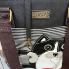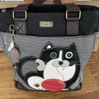 The CHALA FAT CAT Black striped Work Tote is a stylish and spacious handbag made from faux leather and canvas in a black and brown color scheme. It features a rectangular shape with a zipper closure and brown handles/straps. The tote is designed for casual occasions with accents like a zipper pull and a detachable strap, making it practical for everyday use. The black cat pattern adds a playful touch to the bag, making it a fun and unique accessory for any outfit. Perfect for women who love cute and quirky details in their fashion choices, this tote from CHALA is a must-have for cat lovers.