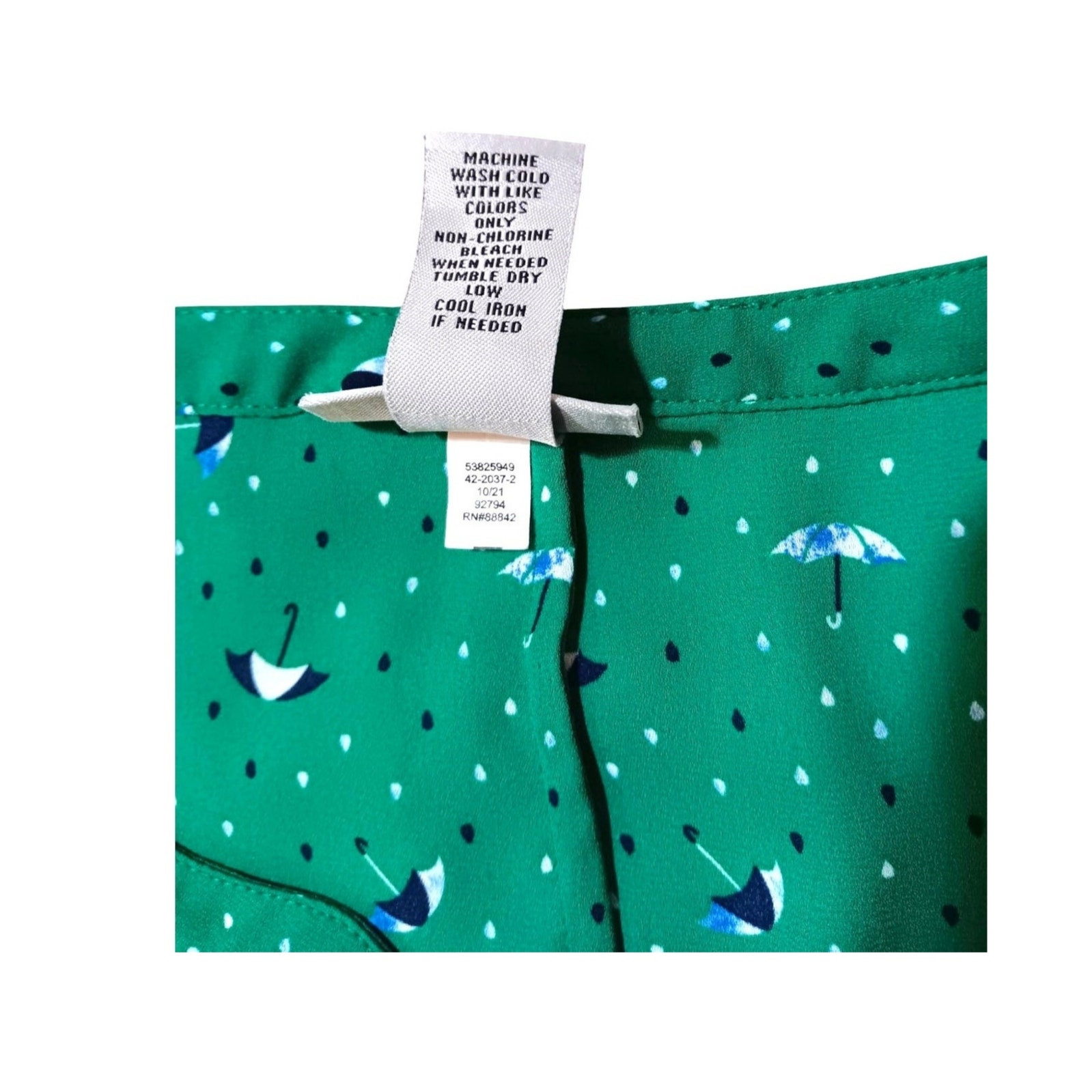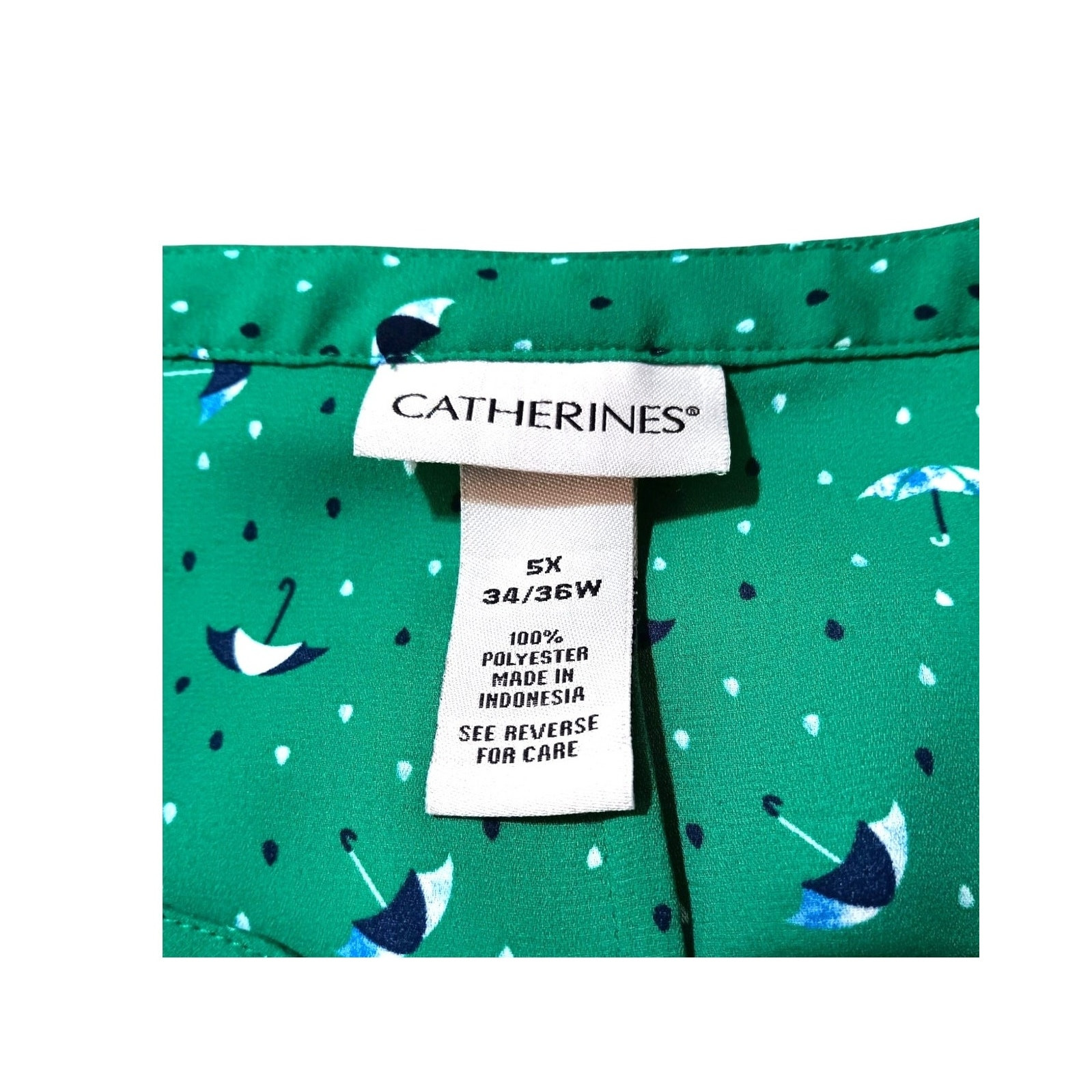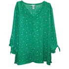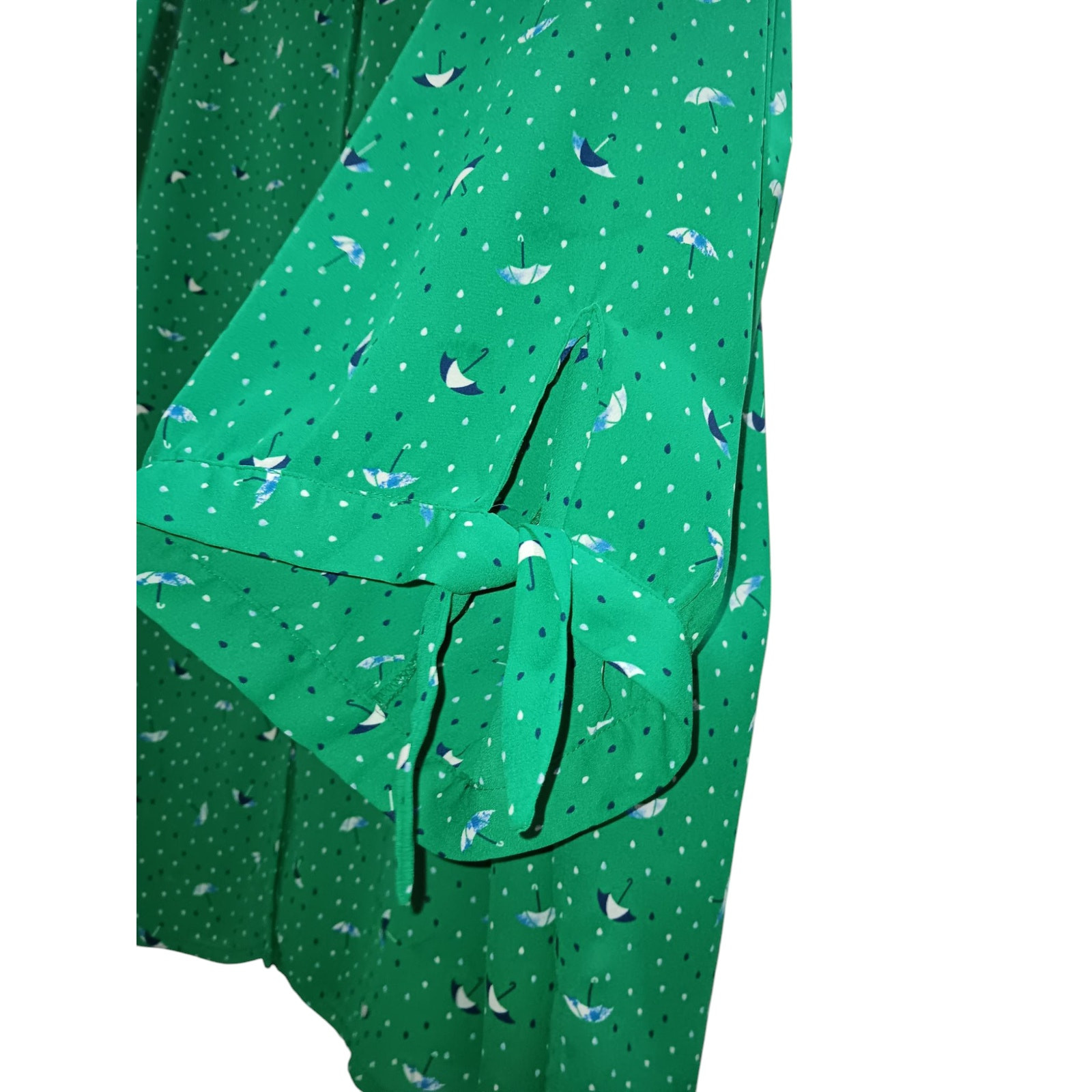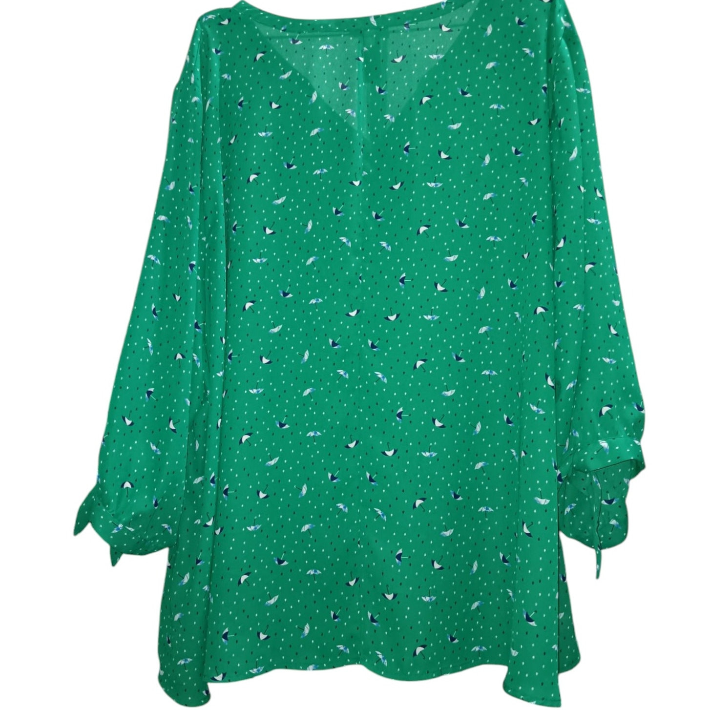 CATHERINES Blouse Top Women's Plus Size 5X V-Neck Unlined Adjustable Tie Cuffs Career Office Dressy Casual Umbrellas Novelty Print Green In very good condition! Color/texture may vary due to lighting/devices Items may show wrinkling from packing/transit ID:B8/9