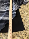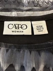Elevate your wardrobe with this chic black and gray geometric patterned blouse from Cato Women. This short sleeve blouse features a round neckline and pullover closure for easy wear. Its lightweight and breathable design, made from a blend of polyester and spandex, ensures comfort throughout the day. The blouse also boasts stunning accents with studded details, adding an extra flair to its classic style. This regular fit blouse is perfect for any occasion, and its size 14/16W makes it a versatile addition to any wardrobe. Proudly made in China, this blouse is a must-have for any fashion-forward woman.