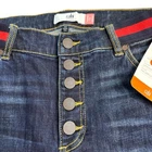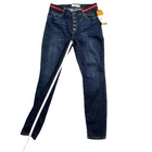 Please see pictures for description. Fast same-day business shipping. Pet loving smoke free clean home. Thank you so much for your interest. If you have any questions, please feel free to ask. Look stylish and feel comfortable in these CAbi skinny jeans. The dark wash blue with red accents and button fly design adds a modern touch to your wardrobe. Made with a cotton blend and spandex fabric, these jeans are both stretchy and durable. The high-rise waist and slim fit help shape your body, while the pockets provide convenience. These jeans are perfect for any occasion, from casual outings to dressing up. With its solid pattern and denim fabric type, it can be paired with any top and shoes. Don't miss out on this must-have item for your collection!