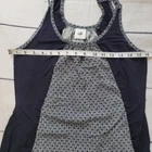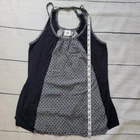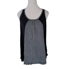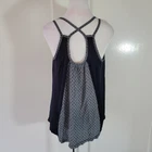 Cabi Size S Blue Polka Dot Cross Strap Navy Blue Tank Top Casual Lightweight Dark navy tank top from CAbi. Center gray panel with polka dots Round neckline Criss-Cross straps in the back Keyhole opening open upper back -Materials: Self: 100% Rayon. Contrast: 100% Polyester -Excellent, pre-owned condition. No visible stains, flaws or tears. No to minimal signs of previous wear. Measurements included in photos - please inquire if more are needed. All offers considered - make one today!