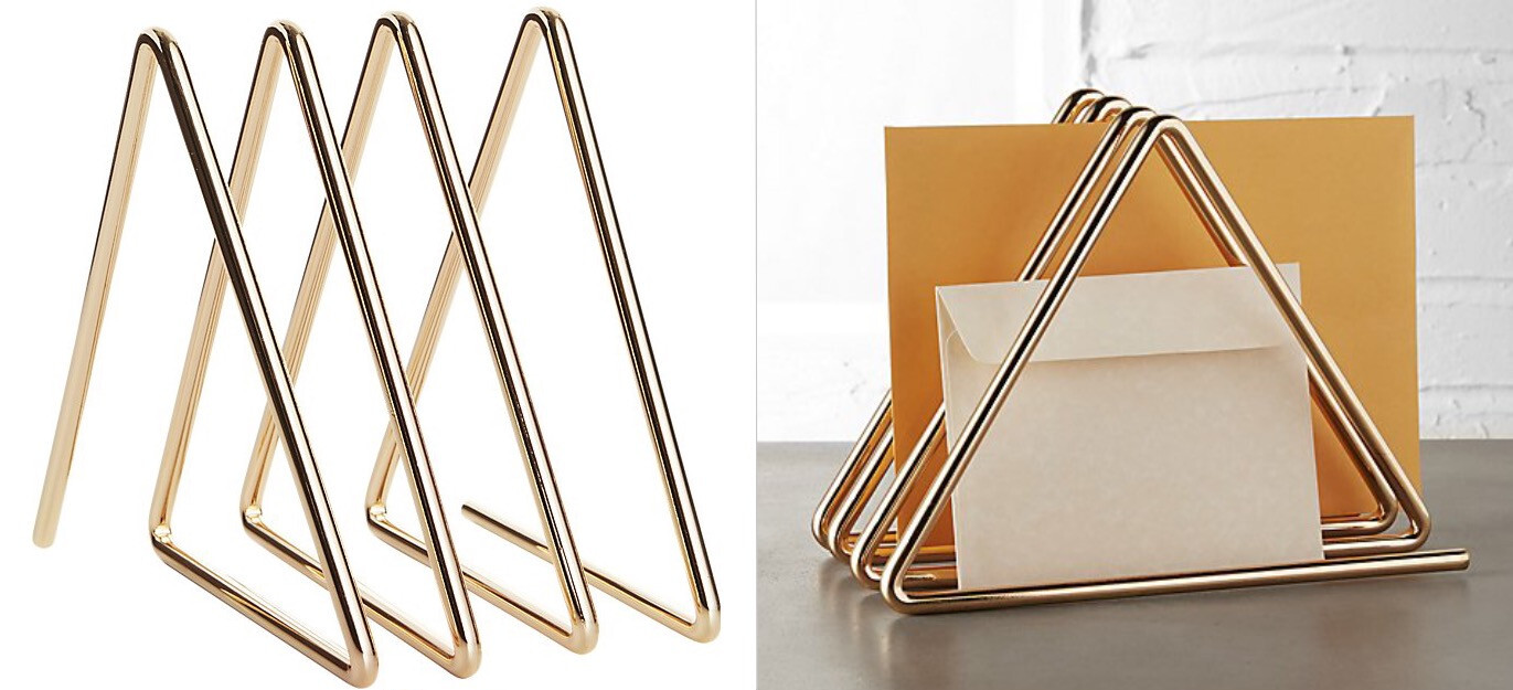 CB2 Gilded File Holder Storage CB2 is an offshoot brand of Crate & Barrel that tends to offer hipper, more “modern urban” furnishings than its hugely known older sibling. Their gilded file holder, for example, adds a touch of style to something as mundane as keeping documents and other items organized on your desk. It’s essentially a “coil” of four iron triangles with an attractive gold finish that gives you slots to vertically store files, memos, folders, notebooks, and even tablets. This item ships Worldwide! Please check out the rest of the items up for sale in my eBay store! E-mail me with any questions! If you have a problem with your transaction please contact me before leaving feedback so I can make things right. I strive for 100% satisfaction with every item sold! Thanks for looking!