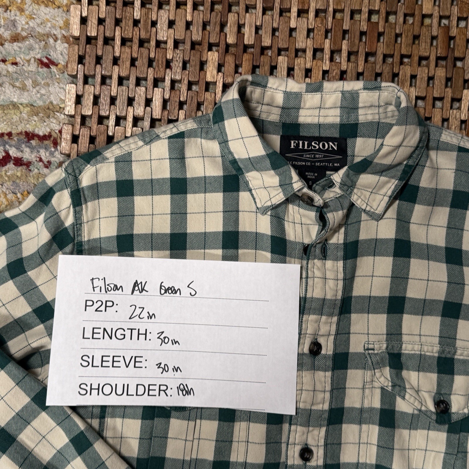 The CC Filson Alaskan Guide Shirt is a versatile and durable button-down for men, perfect for any outdoor adventurer or casual occasion. Made of comfortable cotton with a solid beige color and khaki plaid accents, this shirt features a regular fit and long sleeves with a collared neckline and button closure. The wrinkle-resistant fabric and American theme make it a stylish and practical choice for the modern man looking for a quality piece of clothing that can withstand the elements.