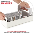 CD Storage Box, Organizer Shelf for Movie Cases, DVDs, Cassette Tape Display Stand, Disc Holder Can Store Up to 40 CDs, Faux Leather (White) Sophisticated CD Storage: Our shelves are a chic and stylish way to organize your CDs. Made with a smooth, faux leather exterior, and a corrugated felt interior, our organizers compliment any home décor. Magnetic Flap: The front flap closure is secured by strong magnets. All you have to do is pull it down for easy access to all of your music CDs, movie discs, audio cassettes, VHS tapes, and more! Interlocking Design: We've specially designed our containers to interlock with one another, allowing you to stack boxes. You can even mix and match with our DVD storage trays to complete your set. Reinforced Handles: Our holders come with sturdy handles so you can easily pick-up, carry, and move your organizers to your desired location. Super Space Saver: Our CD trays can accommodate up to 40 cases, while still being compact enough to easily fit inside of your cabinet, book-shelf, drawer, or even beside your desktop. Dimensions: 17.75” L x 6.25” W x 5.5” H. Shipping We offer FREE shipping on all orders! We ship within Three business days of payment, usually sooner. We use a selection of shipping services such as UPS, FedEx, USPS etc. We only ship to the lower 48 states, no APO/FPO addresses or PO Boxes allowed. Local pickups and combined shipping options are not provided at this time. Return You can return a product for up to 30 days from the date you purchased it. Any product you return must be in the same condition you received it and in the original packaging. Please keep the receipt. Payment We accept payment by any of the following methods: PayPal Please pay as soon as possible after winning an auction, as that will allow us to post your item to you sooner! Feedback Customer satisfaction is very important to us. If you have any problem with your order, please contact us and we will do our best to make you satisfied. Contact Us If you have any queries, please contact us via ebay. We usually respond within 24 hours on weekdays. Please visit our eBay store to check out other items for sale! Thank you for shopping at our store.