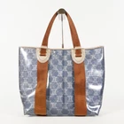 CELINE Logo Macadam Pattern Shoulder Tote Bag Vinyl Leather Blue XY02