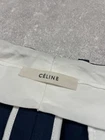 Authentic CÉLINE by Phoebe Philo Navy Blue Wool & Mulberry Silk Trousers Elevate your wardrobe with these sophisticated tailored trousers from the iconic Phoebe Philo era at Céline. Crafted in Italy from a luxurious blend of premium wool and Mulberry silk, these pants offer a subtle sheen, incredible softness, and a structured drape. Details: • Design: Classic pleated front with a sharp crease for a tailored look. • Color: Deep, elegant Navy Blue. • Fabric: High-quality 81% Wool and 19% Mulberry Silk blend. • Interior: Beautifully finished with 100% cotton inner detailing and signature Céline branding. • Fit: Italian size 42. Features belt loops and side pockets. Condition:New Without Tags!