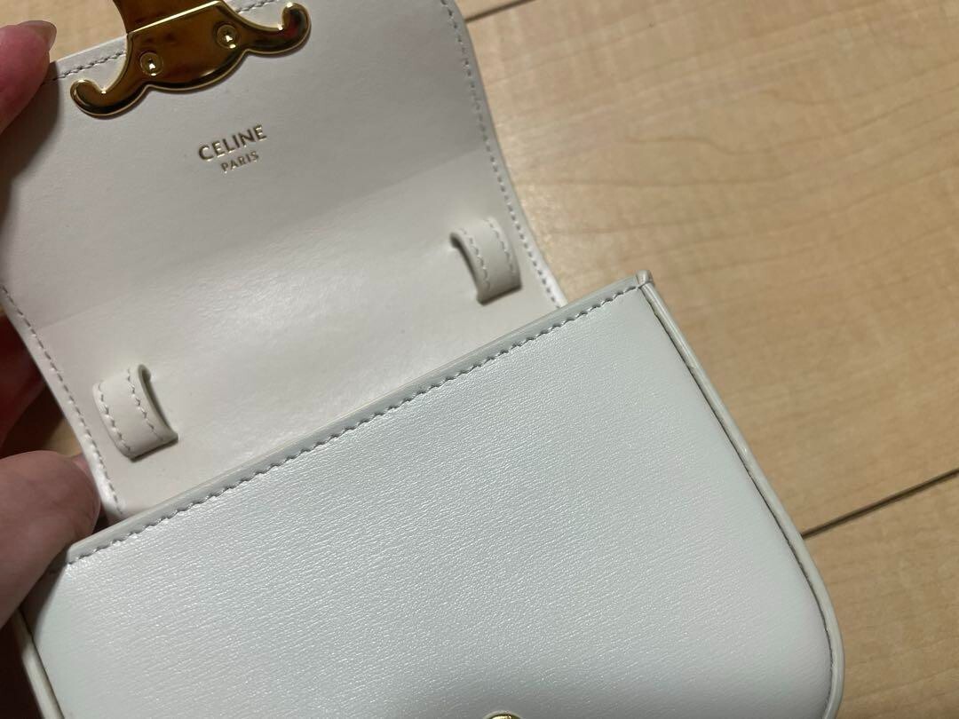Absolutely love this CELINE Mini Triomphe bag! The white color is elegant and timeless, perfect for any outfit. Even though it's pre-owned, it looks practically new—barely used indoors and well stored. Comes with the original case, which is a huge plus. Authenticity guaranteed, and the seller is super responsive. Fast shipping and great packaging. A fantastic deal for a luxury piece in such great condition! Highly recommend!