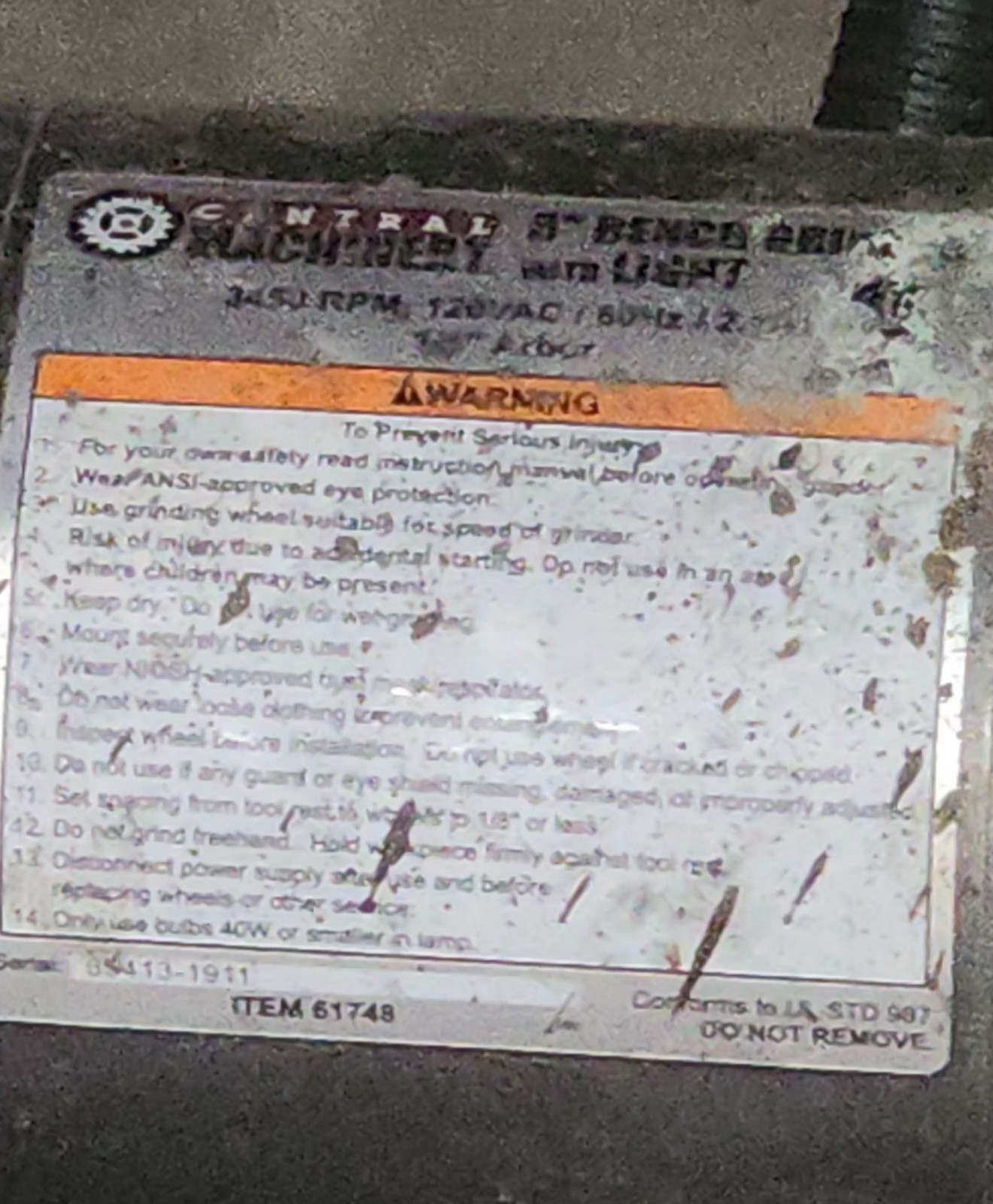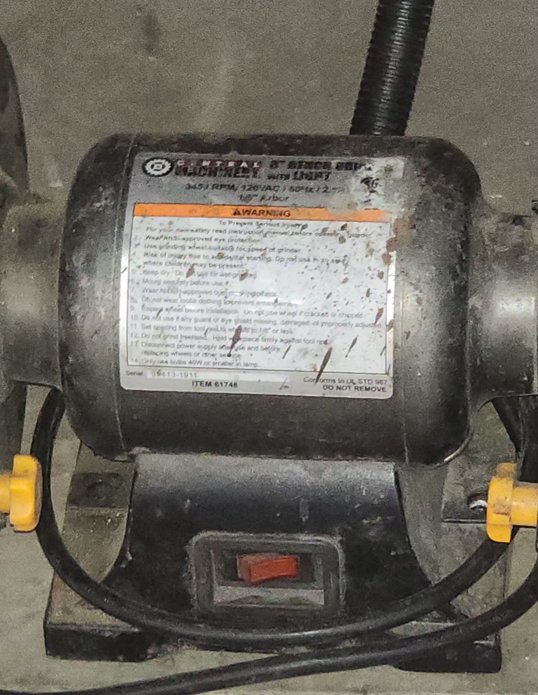 The CENTRAL Bench Grinder is a powerful 1/3hp corded electric tool that operates at 3450rpm and requires a 115v power source. With a 6-inch disc diameter, this multi-color bench grinder is perfect for grinding tasks in the workshop or at home. Manufactured by CENTRAL in the United States, this bench grinder includes a manufacturer's warranty and is a reliable unit for any DIY enthusiast or professional craftsman.