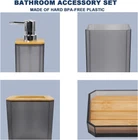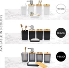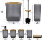 CERBIOR Bathroom Accessories Set 7 Piece Bath Ensemble Includes Soap Dispenser, Toothbrush Holder, Toothbrush Cup, Soap Dish for Decorative Countertop and Housewarming Gift (Matte Black) Product Details Material: Plastic, Bamboo Brand: CERBIOR Style: Z-Black Included Components: Toiletbrush Holder, Dispenser, Toothbrush Holder, Soap Dish Number of Pieces: 7 URABLE and AMAZING QUALITY:This 7-Piece Bathroom Accessory Set is made of durable plastic that can outlast competing products. It’s also ideal for kids' bath for its durability and not easy to break like ceramic set. Our high quality plastic bath accessories will resist to constant use, keeping their look just as elegant and new over time FULLY FUNCTIONAL COMPLETED SET - A completed bathroom accessory set which equips everything you will need to organize your toiletries. Toothbrush holder features 3 - holed openings, 2 ones allow you to keep your toothbrushes and 1 hole to place toothpaste, making brushing teeth in one gra PREMIUM QUALITY LIQUID SOAP DISPENSER PUMP – We know how frustrating it can be to use a flimsy pump that leaks or just does not work. No matter how your bathroom set looks like, a bad pump can ruin the experience. That’s why we included a hard plastic pump for the liquid soap dispenser in this set ELEGANT DESIGN: Take your bathroom decor to stylish new heights with this bathroom accessories set, very stunning and a great touch of extra elegance to the bathrooms, perfect for giving as a gift for housewarming or a wedding Product description Elegant Design , Set Includes :1 Soap Dispenser, 1 Toothbrush Holder, 1 Toothbrush Cup, 1 Soap Dish, 1 Toilet Brush Holder,1 Trash Can,1 Qtip holder