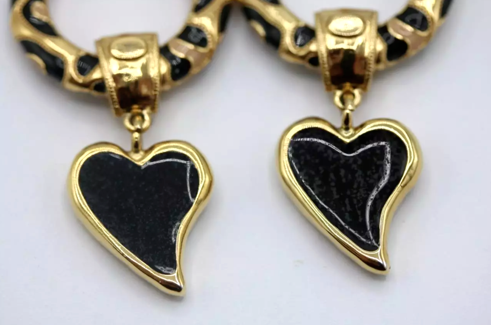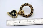 CHANEL 2022 Icon Goldtone Black/Beige Enamel Circle Dangling Heart Earrings Part of the Chanel 2022 spring summer collection. Features goldtone metal with black and beige enamel design. Earrings have a ring shape at the top with a dangling Heart on the bottom with CC logo. Black/Beige enamel Goldtone metal Ring has a 32mm diameter Earrings have a 2 inch drop Made in France Code: A22 P Should you have any further questions please feel free to e-mail. Thank you!