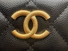 Never been handled or displayed, absolutely pristine, was carefully open ONLY to take pics, using gloves to prevent oil transfer from hands. If you are looking for BRAND NEW card holder this is essential. The wallets, which were handled in stores by customers/sales associates develop stains with the time. VERY IMPORTANT to get UNHANDLED, NEVER DISPLAYED Card Holder, NEVER BEEN in CONTACT with HUMAN SKIN if you are looking for a NEW one, especially for collectible limited edition one. Not to mention, how nice is to unboxed your own pristine treasure? Authentic, brand new, never been out of the box Perfect Gift Giving Condition - full set - box, velvet dust cover, booklet, ribbon, camellia, shopping bag (upon request. Happy to include, but understand not everyone needs it. Just drop us a line and we will include if you do!) Limited Edition! Totally sold out and most wanted with Gorgeous Gold Large Textured CC and Beautiful magenta lining Chanel Caviar Quilted Card Holder in Black Caviar This fashionable card case is crafted of pebbled caviar leather in black. The card holder features a gold tone Chanel BIG CC logo on the front and has card slots with coordinated magenta interiors. 4.5” x 3" - Chanel - and - Made in Italy - stamped inside in Gold . Totally Sold out and most wanted from sold out collection!!! Collector's dream!!! A MAGNIFICENT TIMELESS CLASSIC with STUNNING Design! Such a beautiful and unique wallet!!! The card holder is in pristine brand new condition. Absolutely guaranteed to be AUTHENTIC!!!