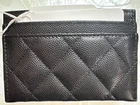 Never been handled or displayed, absolutely pristine, was carefully open ONLY to take pics, using gloves to prevent oil transfer from hands. If you are looking for BRAND NEW card holder this is essential. The wallets, which were handled in stores by customers/sales associates develop stains with the time. VERY IMPORTANT to get UNHANDLED, NEVER DISPLAYED Card Holder, NEVER BEEN in CONTACT with HUMAN SKIN if you are looking for a NEW one, especially for collectible limited edition one. Not to mention, how nice is to unboxed your own pristine treasure? Authentic, brand new, never been out of the box Perfect Gift Giving Condition - full set - tags, box, velvet dust cover, booklet, ribbon, camellia, shopping bag (upon request. Happy to include, but understand not everyone needs it. Just drop us a line and we will include if you do!) Limited Edition! Totally sold out and most wanted with Gorgeous Light Gold STRASS CRYSTALS Large CC Chanel Caviar Quilted Card Holder in Black Caviar This fashionable card case is crafted of pebbled caviar leather in black. The card holder features a light champagne gold tone Black Enamel and Crystals Chanel BIG CC logo on the front and has card slots with coordinated interiors. 4.25" x 3" - Chanel - and Made in Spain - stamped inside in Gold . Totally Sold out and most wanted from the latest collection!!! Collector's dream!!! A MAGNIFICENT TIMELESS CLASSIC with STUNNING Design! Such a beautiful and unique wallet!!! The card holder is in pristine brand new condition. Absolutely guaranteed to be AUTHENTIC!!!