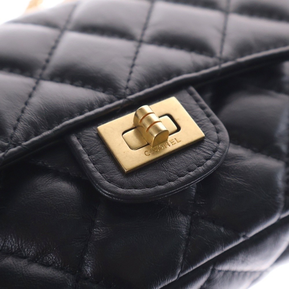 CHANEL 2.55 Mini Chain Shoulder Bag Black Gold Hardware Turn Lock Random Serial