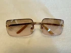 Item Description This is Authentic. Authentic CHANEL sunglasses featuring the iconic rhinestone CC logo on both lenses. Model: 4104-B / c.125/8Z Made in Italy. This pair features a stylish rectangular/square silhouette with a brown gradient lens and gold-tone metal temples. One rhinestone is missing from the left CC logo (please see photos). Includes CHANEL case and cleaning cloth, but the case shows signs of deterioration (used as protective packaging only). Light scratches present, but overall in good vintage condition. Measurements (approx.): Frame width: 13.5 cm / 5.3 in Lens size: 6.5 × 3.5 cm / 2.6 × 1.4 in Temple length: 12 cm / 4.7 in Accessories included: Original box Eyeglass case (for protection only) Cleaning cloth Please check all photos before purchasing. Thank you! Payment We accept Managed Payment. Payment is due within 1 days of the auction end. Shipping Expeditied Shipping FedEx/DHL : $0 free /Delivery Time(About 1~4days +Handling Time) Please note Import duties, taxes, and charges are not included in the item price or shipping cost. These charges are the buyer's responsibility. Please check with your country's customs office to determine what these additional costs will be prior to bidding or buying.